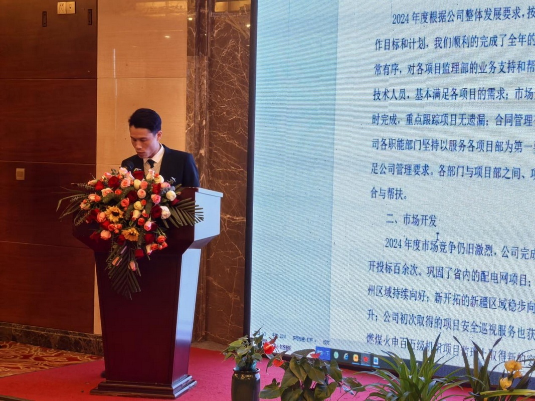 會議由公司常務副總經(jīng)理劉良君主持,并作了《2024年度工作報告》的工作報告。全面回顧了公司2024年生產(chǎn)經(jīng)營情況,在市場開發(fā)、項目管理、人才調(diào)配、合同管理四個方面,總結(jié)了過去一年來所取的成績,同時還指出了公司在項目監(jiān)管方面遇到的挑戰(zhàn)和存在的不足。此外,報告還對2025年工作重點、目標和措施進行了戰(zhàn)略規(guī)劃。